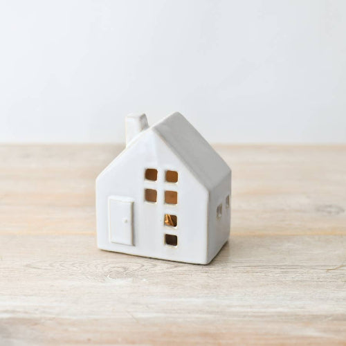 A sweet reactive glazed LED house with cut out windows to help emit a warm glow to any space.